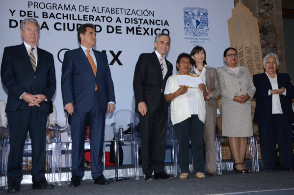 En Patio Octavio Paz de Biblioteca México, Jefe de Gobierno del Distrito Federal, Miguel Ángel Mancera Espinosa, anunció ante la efectividad ha demostrado Programa de Combate Analfabetismo diversificado se desarrolla en la ciudad de México evento “Nunca es tarde para aprender” Graduación de 1000 adultos alfabetizados y de bachillerato, acompañaron Director General Instituto Nacional para la Educación de los Adultos (INEA), Alfredo Llorente Martínez, Secretario de Servicios a la Comunidad de la Universidad Nacional Autónoma de México (UNAM), Enrique Balp Díaz y Secretaria de Educación capitalina, Mara Robles Villaseñor. –