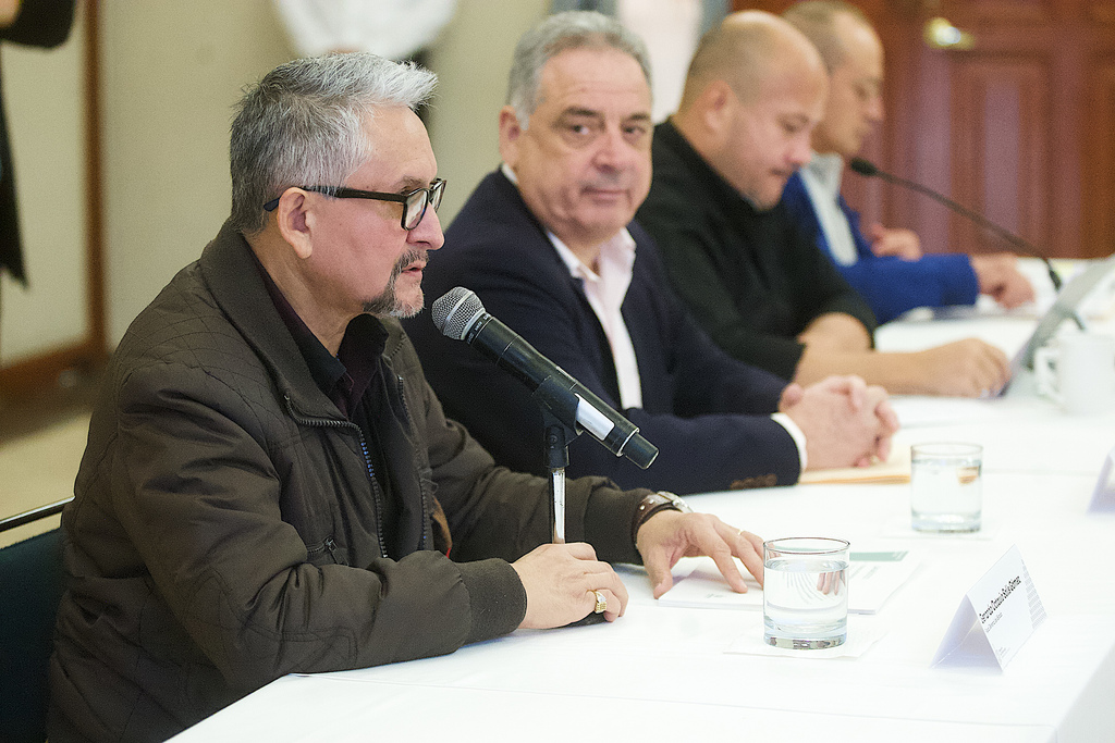 “Tenemos también mesas específicas de trabajo con los alcaldes y otros integrantes para ver por ejemplo de manera específica la estrategia en materia de robo de vehículos, estamos trabajando de manera especial con la policía federal para el tema de robo de vehículos de carga. Tenemos una agenda de trabajo única, por eso decía Macedonio que no nada más nos reunimos a la 7 de la mañana, a las 7 vemos la agenda cotidiana y luego en las tardes estamos teniendo reuniones con mesas especiales para ver el robo de vehículos, robo de carga, robo a negocios que tiene una estrategia y el abigeato con la Unión Ganadera y con presidentes municipales del interior del estado”.