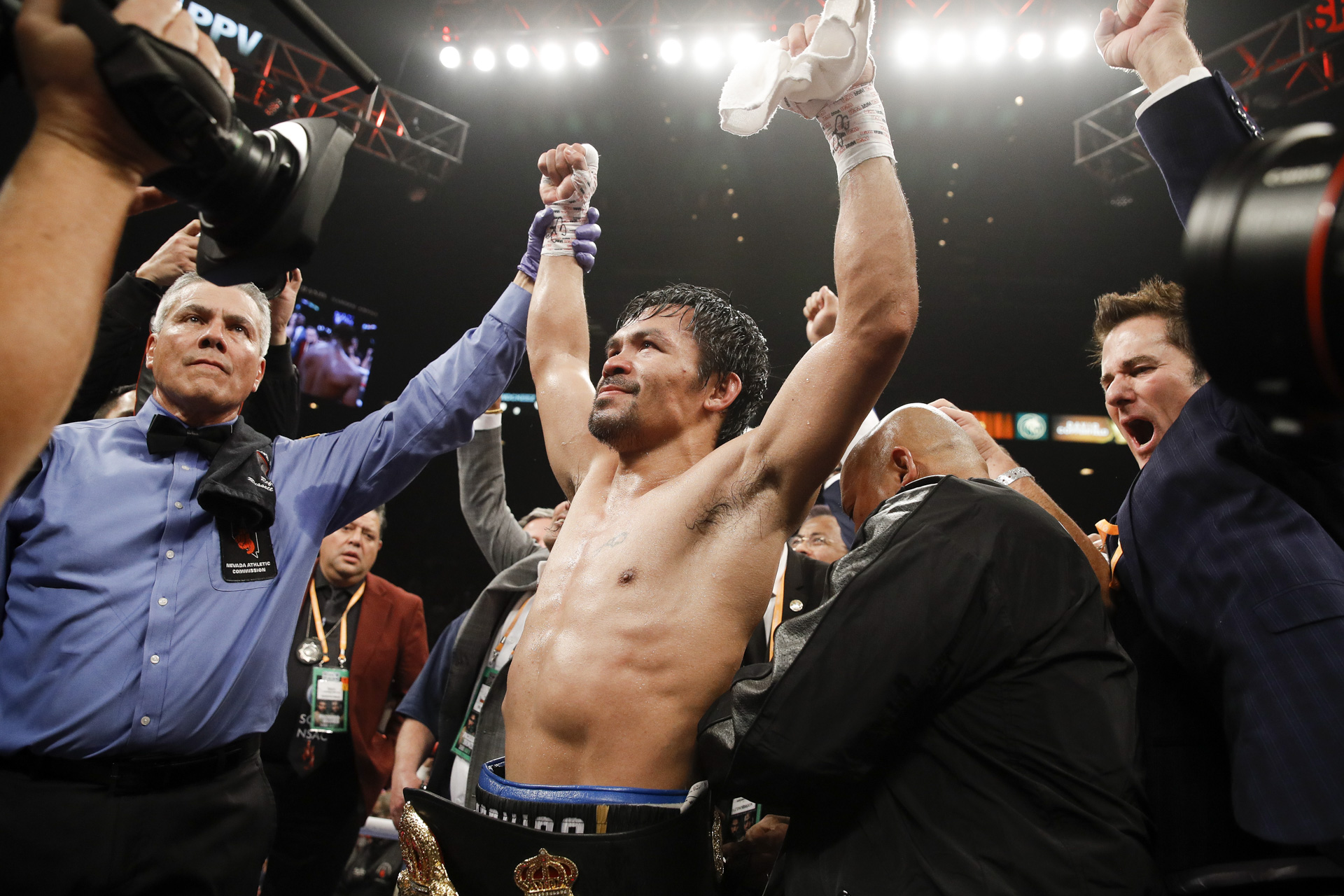 Asked by SHOWTIME’s Jim Gray if he would like to rematch Mayweather in the future, Pacquiao said he’d do it if Mayweather unretired.