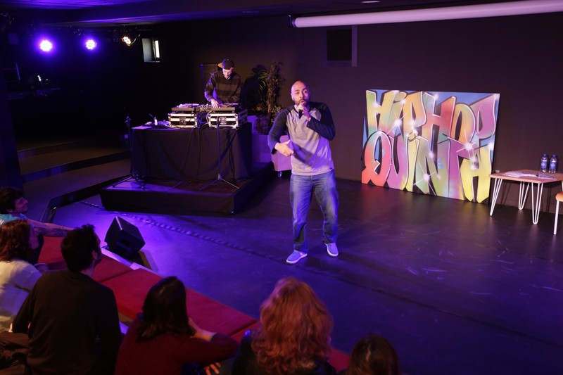Durante la presentación ha habido actuaciones en directo de DJ Bigfalanges y del break dancer RoboroB, y los visitantes han podido contemplar el grafiti que Francisco Reyes ha realizado ad hoc para Espacio Abierto con el nombre del ciclo (¡’Hip Hop’ Quinta!). ¡Porque la Quinta es el quinto elemento del hip hop!