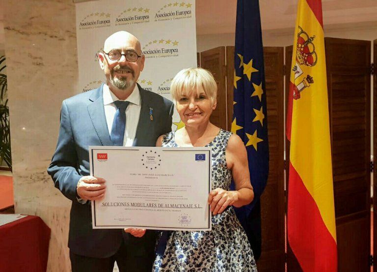 La Asociación Europea de Economía y Competitividad ha otorgado su máxima distinción la ‘Medalla de Oro al Mérito en el Trabajo’ a Soluciones Modulares de Almacenaje, que reconoce el espíritu empresarial dentro del marco europeo a diversas compañías, instituciones y expertos profesionales que han fomentado la conciencia del emprendedor y el desarrollo económico del país