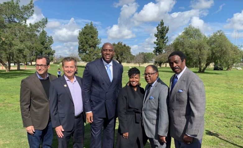 Saturday 3/9/19 in el Segundo Surrounded by hundreds of cheering South Los Angeles residents, Supervisor Mark Ridley-Thomas and Earvin “Magic” Johnson kicked off a $70-million renovation of the park bearing the basketball legend’s name in the community of Willowbrook.