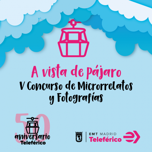 La Empresa Municipal de Transportes (EMT) va a lanzar la quinta edición del Concurso de Microrrelatos y Fotografías, que este año tiene como protagonista a Teleférico de Madrid por su 50 cumpleaños. Bajo el lema “A vista de pájaro. 50 Aniversario de Teleférico de Madrid”, los concursantes deberán participar a través de las redes sociales Facebook e Instagram entre el 15 de abril y el 14 de mayo de 2019.