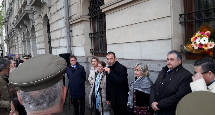 Esta mañana, martes 23 de abril, se ha descubierto una placa en recuerdo de dos víctimas mortales de un atentado terrorista en el distrito de Retiro. La insignia se ha colocado en el número 2 de la avenida Ciudad de Barcelona, lugar dónde se cometió el asesinato de los militares José María Martín-Posadillo Muñiz e Ignacio Julio Barangua Arbués por la organización terrorista ETA.