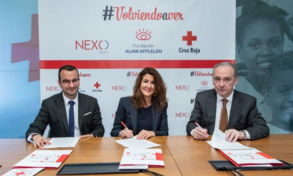 Esta unión, sellada en la sede de Cruz Roja Española en Madrid por parte de Eva Ivars, Directora General de ALAIN AFFLELOU y Representante de la Fundación ALAIN AFFLELOU, Leopoldo Pérez Suárez, Secretario General de Cruz Roja y Enrique Sánchez, Director General de NEXO Optics estará vigente durante un año.