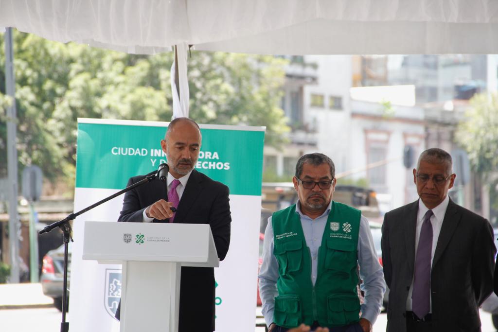 En su intervención, el secretario de Movilidad, Andrés Lajous Loaeza, informó que la operación vial de la avenida se mejorará a través de una reingeniería de tránsito que disminuirá los tiempos de traslados para los automovilistas, garantizará la seguridad de los ciclistas y mejorará el paso de los peatones al duplicar el espacio peatonal.