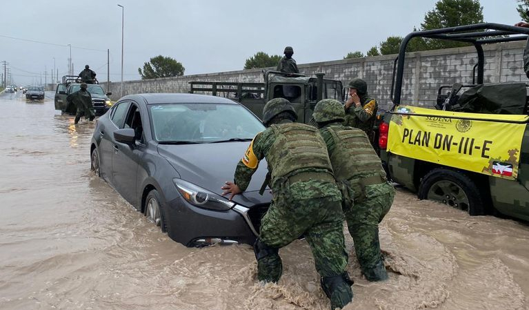 Debido a las constantes precipitaciones registradas en la zona norte del estado, se reforzó con más de 100 elementos, con el fin de apoyar al personal que se encontraba aplicando el Plan DN-III-E Y a las personas afectadas en el poblado Los Guerra y en su cabecera municipal Miguel Alemán, Tamps.