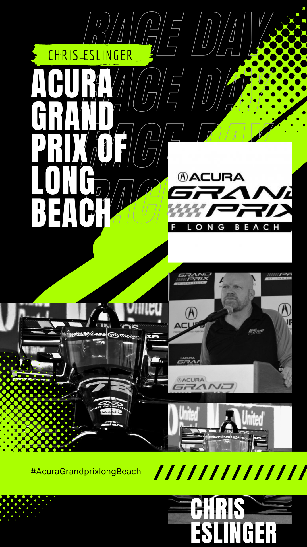 Chris Esslinger, well respected to mix minority Press and big corporations; and keeps high standards to year by year make appropriate use of content of Indy car racing; to benefit the thousands of fans auto sports in Long Beach same vision of Jim Michaelian President/CEO of the Grand Prix Association of Long Beach.