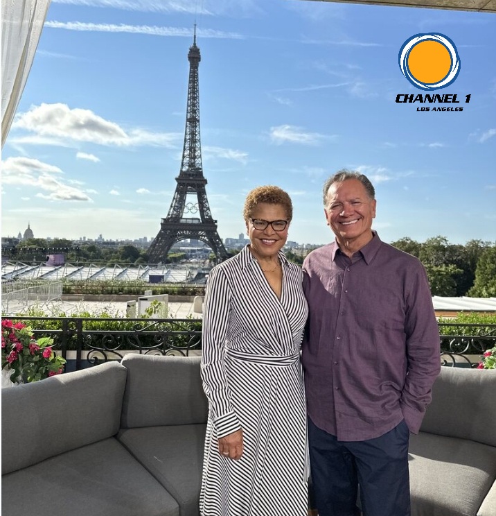 Mayor of Los Angeles, Karen Bass with George L. Pla Cordoba Corporation’s Founder & CEO, in his capacity as the President of the Los Angeles #MemorialColiseum Commission, attends the 2024 #Paris2024 Olympic Games #CityofLA#LA#Latinos