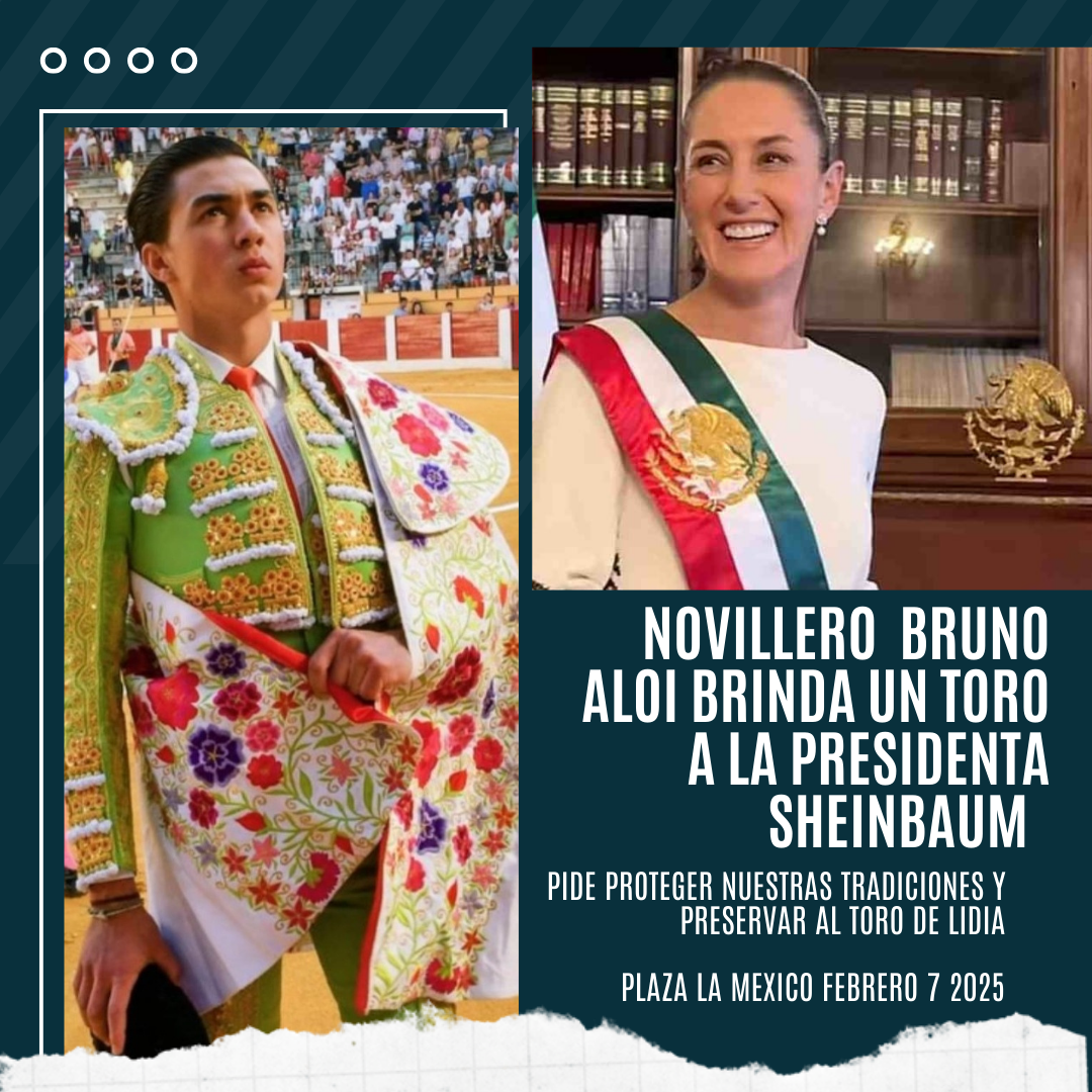 Este es un brindis respetuoso a la presidenta de México, Claudia Sheinbaum. En nombre de todos los mexicanos que votamos por usted, nos prometió proteger nuestras tradiciones, y por este motivo le pido que nos ayude a apoyar al toro de lidia, el cual es el animal que ayuda a preservar la flora y la fauna en nuestro país’