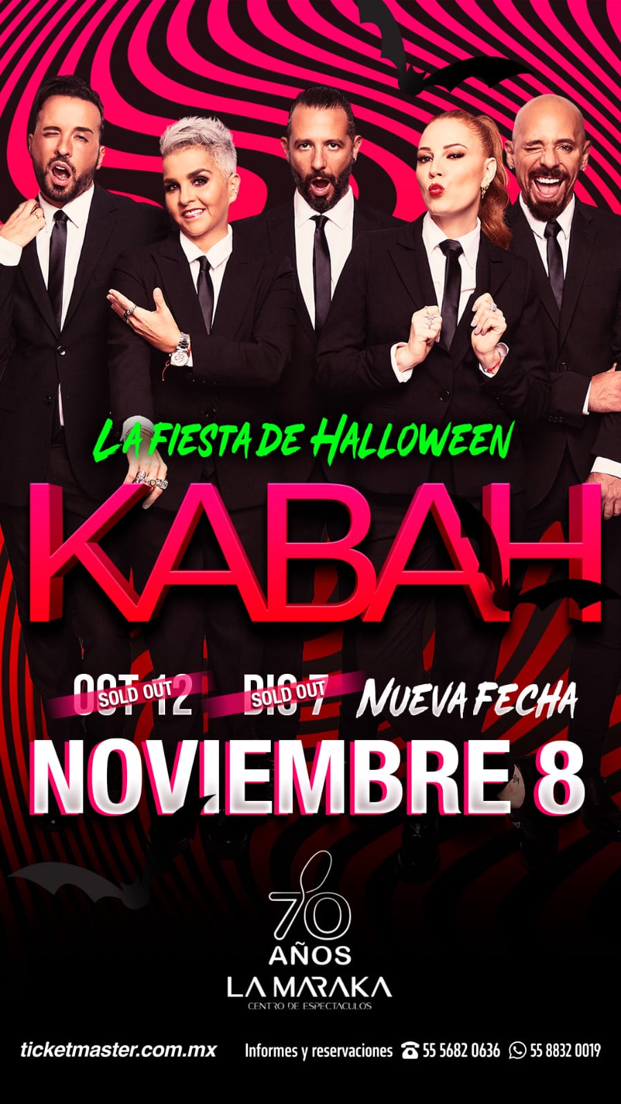 Nuevamente Kabah encenderá las luces en La Maraka para este espectacularreventón musical y así festejar Halloween con todos sus fans. Se trata de la terceraocasión en que el talentoso grupo noventero se presenta en este recinto de lacapital del país.